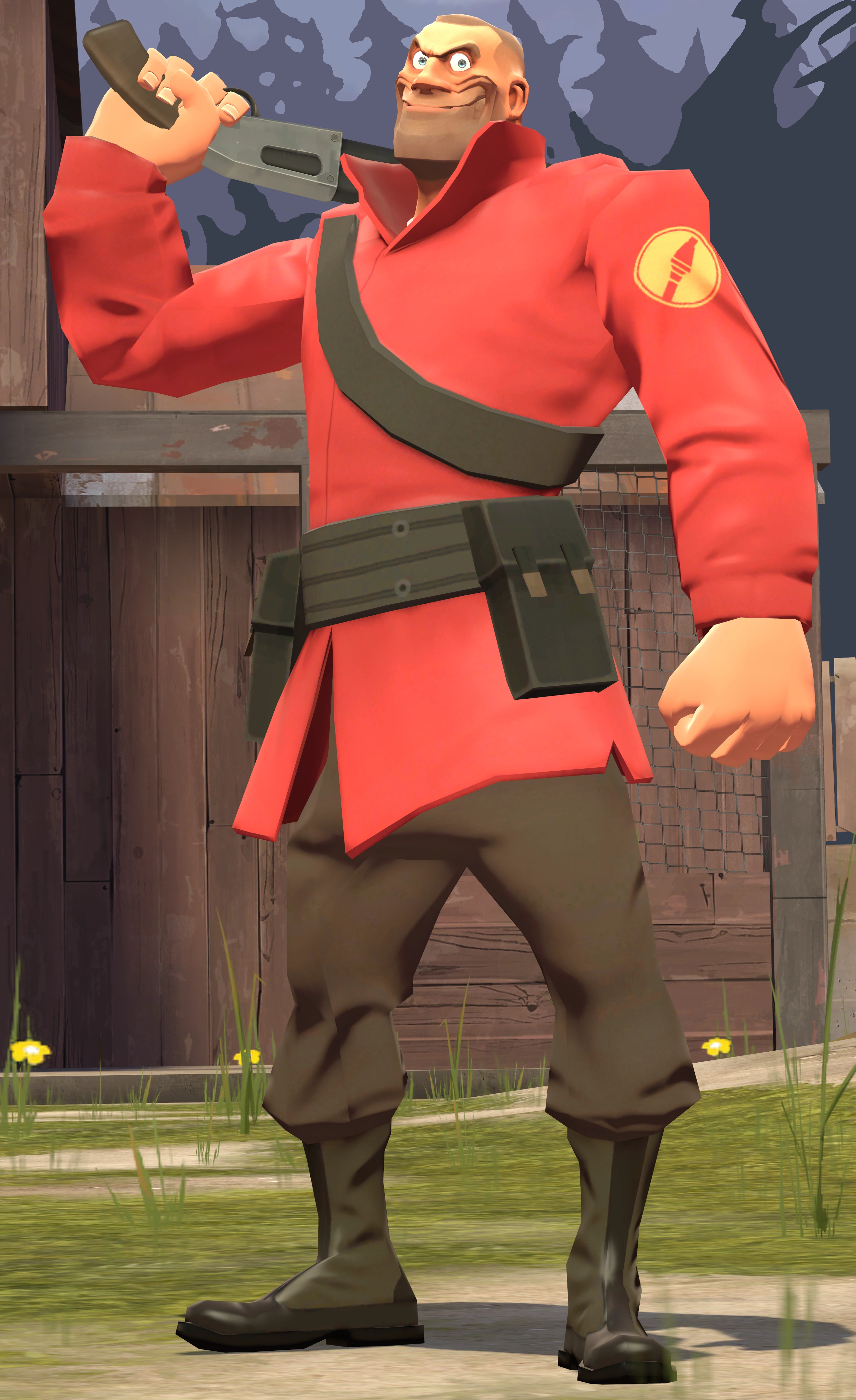 El comenzó su vida como un niño corriente. Su padre lo crió bajo la filosofía de que morir es gay, y al madurar, se unió al equipo RED. Actuó como un Soldier normal durante años, antes de que un día obtuviera su poder titular gracias a un experimento de su Medic. Sin embargo, este poder era difícil de dominar, y su primer intento de utilizarlo acabó en fracaso. Desde entonces lo ha dominado, y American Boot sirve ahora como líder de su equipo.