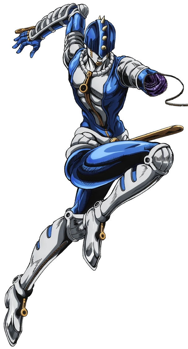- Sticky Fingers: Sticky Fingers es el Stand de Bucciarati, teniendo una altura y complexión física similares a las de su usuario. Sticky Fingers es un Stand de corto alcance cuyo rango no sobrepasa los dos metros, sin embargo esto puede compensarse por la fuerza y velocidad que este posee.