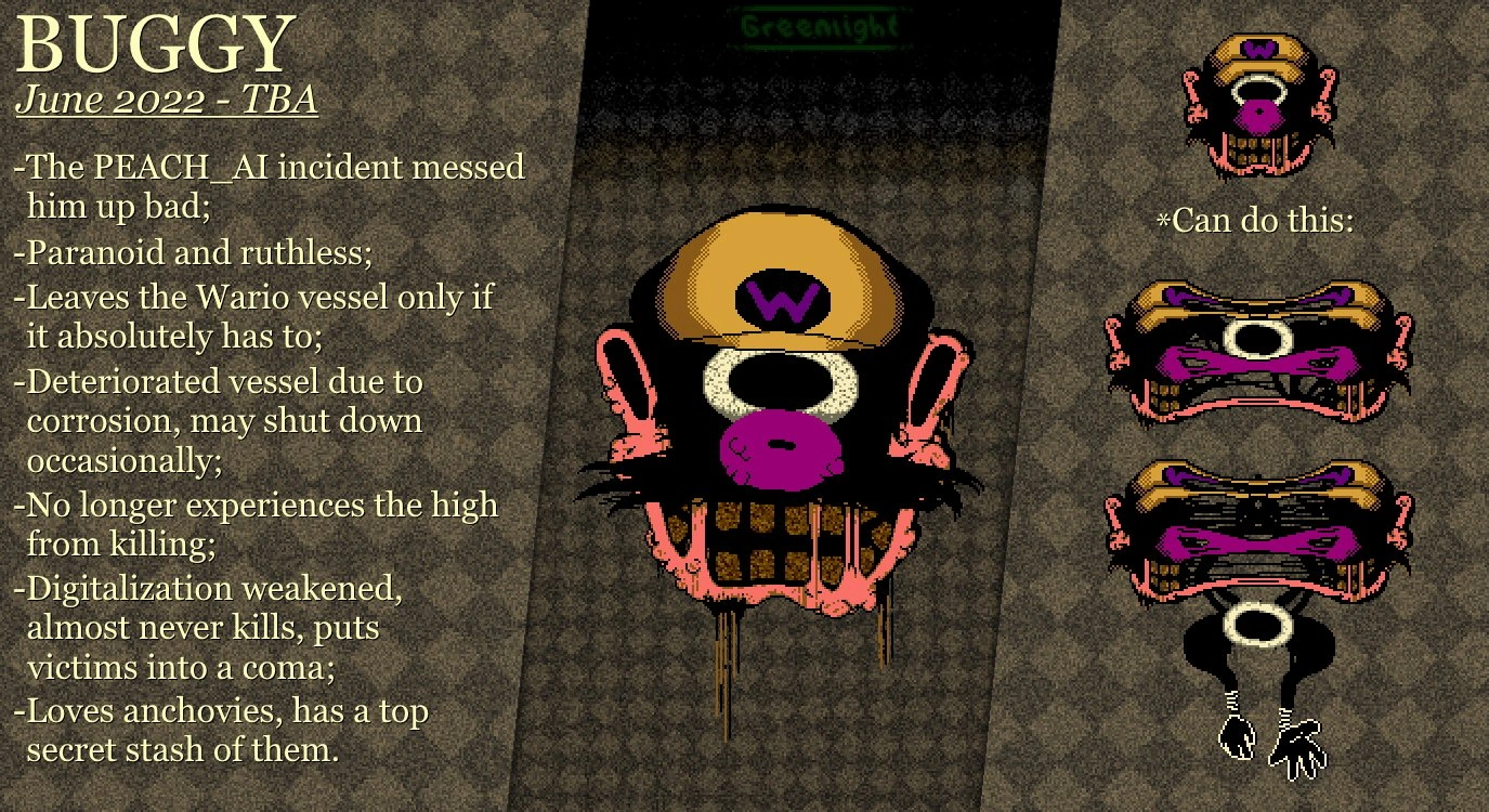 Esta entidad es una IA, la cual originalmente se encargaba de servir como asistente de Mario, Luigi y Peach (que también son IAs), pero que, presumiblemente por culpa del uso de códigos trampa por parte de uno de los antiguos jugadores, se ha vuelto rebelde, buscando atormentar a los jugadores y atrapar sus mentes dentro del juego para su propia diversión.