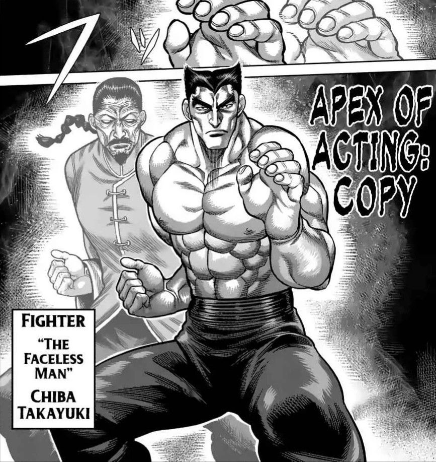 Chiba Takayuki, también conocido como El Hombre sin Rostro, es un "actor" del submundo y un luchador afiliado dentro de los combates de Kengan. Representó a Yoshitake Real Estate durante el Torneo de Aniquilación de Kengan. Como un "actor" experimentado, la verdadera personalidad de Chiba es difícil de discernir, ya que cambia su personalidad para satisfacer sus necesidades, pudiendo cambiar su tono y estado de ánimo de manera fluida y convincente. Es, naturalmente, una persona engañosa e intrigante, capaz de hacer que los demás crean sus tácticas sin esfuerzo.