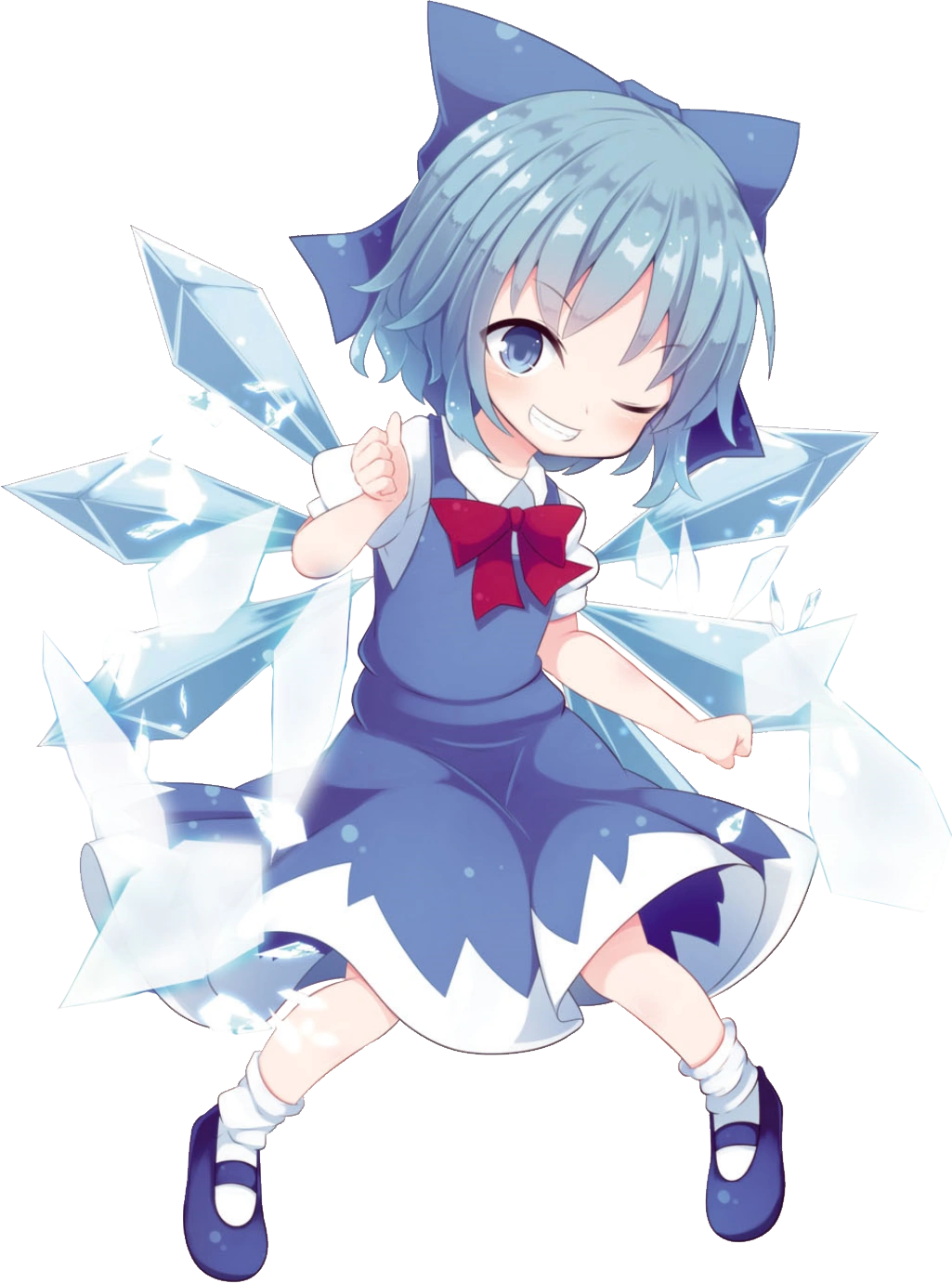 Cirno es un hada de hielo que apareció por primera vez en la segunda etapa de Embodiment of Scarlet Devil. En comparación con otras hadas, ella es relativamente fuerte; Sin embargo, en comparación con la gran mayoría de los residentes de Gensokyo, su fuerza es deficiente. Ella muestra rasgos a la par de los de una niña, y actúa como la protagonista principal de Great Fairy Wars, y una de varios protagonistas en Touhou Hisoutensoku y Hidden Star en Four Seasons.