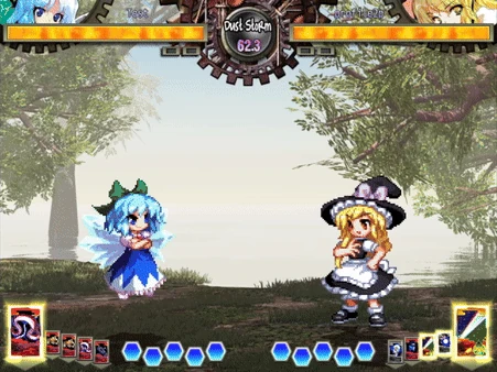 Durabilidad: Varía mediante Motivación (Podrá volver a pelear inmediatamente tras ser derrotada siempre y cuando todavía esté motivada. Cirno gana motivación para luchar cada vez que vence a un enemigo, pero pierde motivación si es derrotada[2])