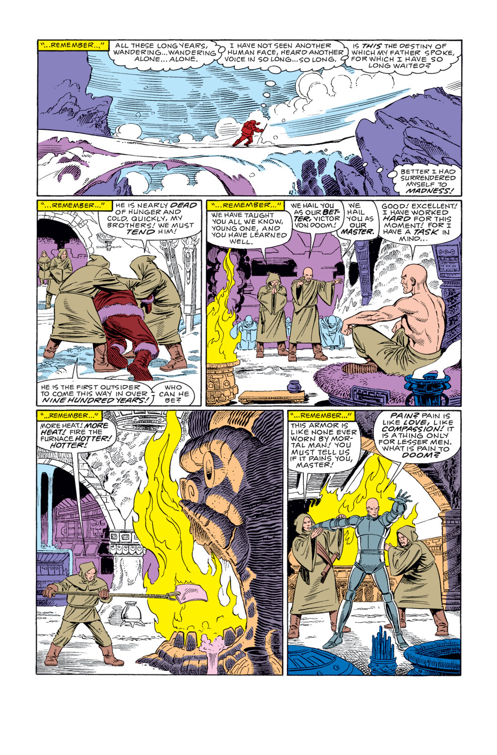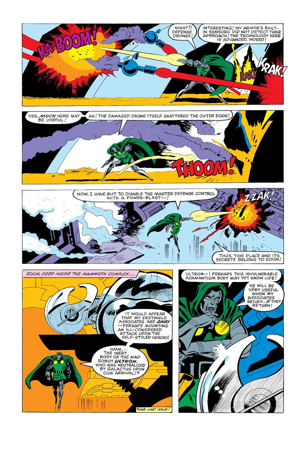 | “ | ¿Yo, que he dominado todas las artes, todas las ciencias, todos los secretos? ¿De quién es la tecnología y la magia que cruzan las estrellas con la misma facilidad con la que revuelven la mente de un telépata alfa? ¿Quién se atrevería a decir que no me he ganado el derecho? Sin embargo, soy rey de una nación sencilla. En un planeta simple. Un jardín amado cuidado por manos de hierro. Y el único título que he reclamado... es Doctor Doom | „ |