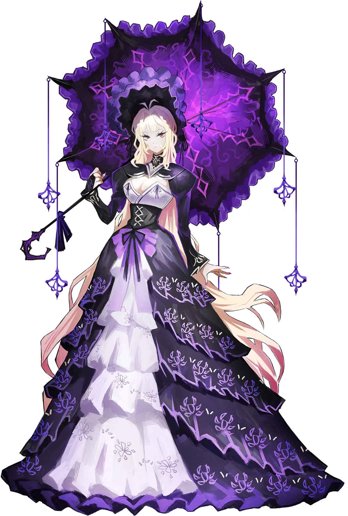Dulcinea es una mujer delgada, de piel pálida y cabello liso y rubio platino, que cae sobre su frente y llega hasta el suelo. Lleva un vestido de baile en capas de color morado oscuro con bordados de flores de color lila, decorado con un gran lazo morado, un corsé blanco y negro con un escote profundo y hombreras de color morado oscuro y mangas sueltas. También usa un gorro con volantes negro y morado, así como esmalte de uñas de color morado. Su rostro está cubierto por una máscara con forma de mariposa, y se puede ver su ojo izquierdo brillando en rojo detrás de ella. Dulcinea lleva una gran sombrilla con volantes, que utiliza en combate.