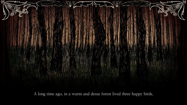El día en que los ojos de Big Bird que podían ver a cientos de kilómetros de distancia, Long Bird que podía juzgar cualquier pecado y la boca de Small Bird que podía devorarlo todo se unieron en uno, la oscuridad cayó sobre el bosque.
