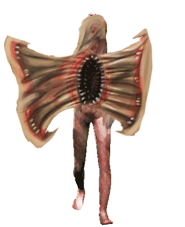 Esta apariencia también se incluye en su forma donde su torso se abre en dos partes que hacen una abertura con pequeños dientes que rodean las paredes internas de su aparente boca.