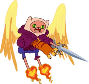 - Reacción a las Heridas: Finn es capaz de aguantar un castigo extremo. Puede permanecer congelado durante horas[53] sin morir de hipotermia o haberle bajado la temperatura corporal. También puede permanecer explorando mazmorras por varias horas teniendo heridas graves, pero no siente dolor.