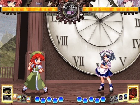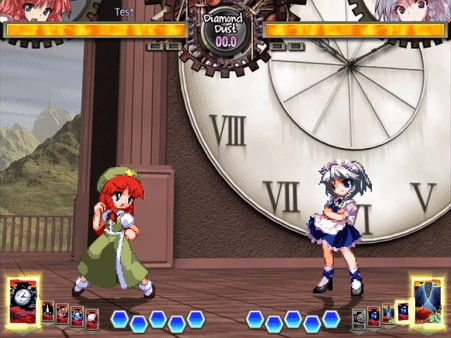 - ↑ 12,00 12,01 12,02 12,03 12,04 12,05 12,06 12,07 12,08 12,09 12,10 Touhou 12.3 ~ Hisoutensoku, Skill Cards de Meiling