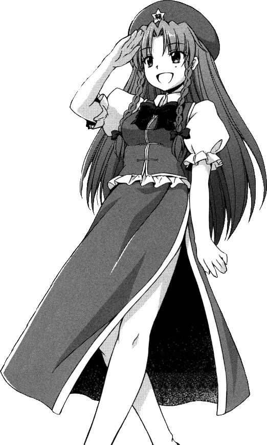![]() Embodiment of Scarlet Devil Immaterial and Missing Power Shoot the Bullet Touhou Hisoutensoku Bohemian Archive in Japanese Red Meiling, responsable del cuidado del jardín, afirma no ser la culpable, pero admite que Remilia le ha encargado restaurar el jardín a su estado original ahora que su señora se ha aburrido del patrón de los círculos de las cosechas. Durante su entrevista con Aya Shameimaru, ella nota que está bastante preocupada porque no tiene idea de cómo cambiar las flores. Cuando se le pregunta sobre los orígenes de los círculos de las cosechas, Meiling niega con vehemencia haberse quedado dormido, por lo que Aya continúa hablando de extraterrestres... El culpable revelado al final es Patchouli Knowledge. Touhou Bougetsushou Wild and Horned Hermit Cheating Detective Satori Más adelante en el incidente, Sakuya Izayoi es acusado de ser el culpable del envenenamiento de Patchouli y por lo tanto es encerrado en el sótano. Meiling visita a Sakuya para traerle comida y despreciarla debido a la cantidad de pruebas que apuntan a que ella es la culpable. Ella cierra de golpe y cierra con llave la puerta del sótano a Sakuya antes de dejarla allí sola con Flandre Scarlet. Algún tiempo después, en este mismo incidente, Reimu Hakurei está volando sobre su cabeza cuando ve a Meiling desmayada en el suelo. Reimu aterriza y se acerca a Meiling, intentando despertar a Meiling con una bofetada, sin embargo, esto no funciona. Rin luego se acerca a Reimu y a Meiling, que se ha desmayado en el suelo. Rin inspecciona brevemente a Meiling antes de concluir que los síntomas que siente Meiling son los mismos que los síntomas de Patchouli, lo que significa que Meiling también ha sido envenenada por el culpable desconocido. Al final del primer incidente, se revela que tanto Patchouli como Meiling no fueron envenenadas sino que estaban poseídas por un criminal del Antiguo Infierno. Dicho criminal es un espíritu vengativo con la capacidad de controlar el cuerpo así como devorar la energía mágica de aquellos que posee. El criminal primero poseyó a Sakuya para acercarse a Patchouli. Luego, el espíritu saltó sobre Meiling, minó su energía y la puso en coma. Créditos a la wiki de Touhou Project |