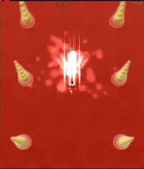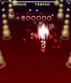 Carta de Reimu. Encierra instantáneamente el espacio circundante con una barrera mágica, una carta defensiva que repele a los enemigos cercanos y los envía a volar. Tiene una larga duración de invencibilidad segura proporcionando gran seguridad. |