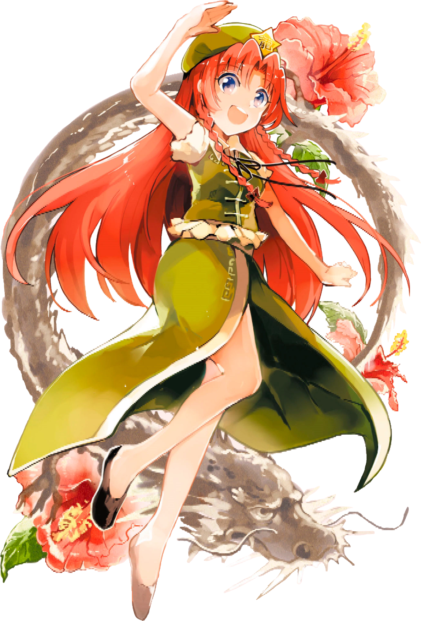Hong Meiling es una youkai, aunque actualmente no se sabe a qué categoría específica pertenece. Ella es la guardiana de la Mansión del Diablo Escarlata. Es conocida por su dominio de las artes marciales, parte del cual se puede ver en su movimiento basado en Bajiquan, como Shin-Kyaku y Tetsuzanko.