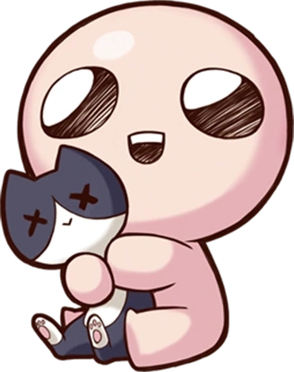 La voz una vez más le habla a la madre de Isaac, indicando que Isaac debe ser cortado de todo lo que es malo en el mundo. Una vez más, su madre obedece y encierra a Isaac dentro de su habitación. Una vez más, la voz le habla a la madre de Isaac. Afirma que lo ha hecho bien, pero aún cuestiona su devoción y le dice que sacrifique a su hijo. Ella obedece, toma un cuchillo de carnicero de la cocina y camina hacia la habitación de Isaac. Isaac, mirando a través de una grieta considerable en su puerta, comienza a entrar en pánico. Encuentra una trampilla escondida debajo de su alfombra y salta, justo cuando su madre irrumpe en la puerta de su dormitorio. Isaac luego coloca el papel que estaba dibujando en su pared, que se convierte en la pantalla de título. Hasta la expansión The Binding of Isaac: Repentance, no hay una conclusión clara, o incluso una narrativa consistente, para la historia más allá de este punto. El juego presenta 13 posibles finales, uno después de cada pelea con un jefe importante. Los primeros diez finales sirven como introducción a los elementos desbloqueados y la mecánica, mientras que los tres últimos sugieren que Isaac se sube a un cofre de juguetes y se asfixia. Durante los puntos de carga del juego, se muestra a Isaac acurrucado en una bola, llorando. Sus pensamientos son visibles, desde el rechazo de su madre y la humillación de sus compañeros hasta un escenario que involucra su propia muerte. Magdalene, o Maggy, se desbloquea cuando el jugador obtiene siete o más contenedores de corazón a la vez en una carrera. Magdalena comienza con cuatro recipientes de corazón rojo y el Yum Heart. Si se completa el desafío Aprils Fool, también comenzará con una píldora Speed Up. Está basada en la madre de Isaac, y también en Moriah, la montaña donde Isaac fue sacrificado en la historia bíblica. Cain se desbloquea cuando el jugador posee 55 o más monedas a la vez en una carrera. Comienza con dos recipientes de corazón rojo, el Lucky Foot y una llave. Cain también comenzará con la baratija Paper Clip si se han donado 68 monedas a Greed Machine. Está basado en Cain, de la historia de Cain y Abel Judas es un personaje que se desbloquea después de vencer a Satanás por primera vez. Judas comienza con un recipiente de corazón rojo, pero tiene El Libro de Belial al comenzar, así como 3 monedas. Está basado en Judas Iscariot, el discípulo de Jesus que terminó traicionandolo. ???, también conocido como Blue Baby, es un personaje que se desbloquea al derrotar a Mom's Heart diez veces. Comienza con tres corazones de alma, y su medidor de salud es único en el sentido de que no puede obtener contenedores de corazones rojos. Si un artículo le otorgaría un contenedor de corazón rojo (incluido uno vacío), en su lugar agrega un corazón de alma. A diferencia de muchos de los otros personajes, ??? No aparece en la Biblia ni en ninguna escritura religiosa. Él es el primer personaje con esta distinción. Eve es un personaje que se desbloquea al superar dos pisos seguidos sin recolectar ningún corazón. Eve comienza con dos contenedores de corazón rojo, Whore of Babylon y Dead Bird. Eve también comenzará con la Razor Blade al donar 439 monedas a Greed Machine. Sin embargo, si la Razor Blade no se ha desbloqueado al derrotar a Satanás con Eve, Eve no comenzará con la Razor Blade hasta que se hayan cumplido ambas condiciones. Esto se cambió en AB + Booster Pack 5. Eve comenzará con la Razor Blade independientemente de si está desbloqueada o no, siempre y cuando se hayan donado 439 monedas a Greed Machine. Está basada en Eva, la pecadora original. Samson se desbloquea cuando el jugador derrota dos pisos seguidos sin sufrir ningún daño. Samson comienza con 3 recipientes de corazón rojo y Bloody Lust. Cada vez que Samson recibe daño, recibe un aumento de daño que se reinicia cuando cae por un piso. Samson comenzará con la baratija Child's Heart después de completar el desafío Ultra Difícil. Está basado en Samson, un guerrero sobrenaturalmente fuerte que derivó su poder de su voto nazareo, dando derecho a una inmensa fuerza a Sansón si no se cortaba el pelo. Azazel es un personaje de The Binding of Isaac: Rebirth que se desbloquea al hacer tres tratos con el diablo en una sola carrera. Azazel comienza con una versión de corto alcance de Brimstone, la capacidad de volar, la carta 0, The Fool y tres corazones negros sin ningún contenedor de corazón normal; sin embargo, a diferencia de ???, Azazel todavía puede obtener recipientes de corazón con artículos. Está basado en Azazel, la cabra que fue arrojada a la naturaleza como parte de los rituales de expiación judíos. Sin embargo, en ciertas tradiciones de las religiones abrahámicas, Azazel se refiere al ángel caído que enseñó a las personas a fabricar armas y joyas y enseñó a las mujeres el "arte pecaminoso" de pintarse la cara, como se menciona en el libro apócrifo de Enoc. Lazarus se desbloquea una vez que el jugador tiene cuatro o más corazones de alma (o corazones negros) a la vez durante una carrera. Es un personaje nuevo en The Binding of Isaac: Rebirth. Comienza con tres envases de corazón rojo y una pastilla al azar. Tiene un rango y una suerte ligeramente más bajos que Isaac, pero también tiene 1 vida extra al comienzo del juego. Su forma revivida ha aumentado las estadísticas base, con daño, velocidad y alcance superiores al promedio. Aunque tiene poca salud, sus estadísticas mejoradas contrarrestan bien esta debilidad. Después del desafío 31: Backasswards es derrotado, Lazarus comenzará con Anemic. Está basado en Lazaro de Betania, el sujeto de un signo prominente de Jesús en el Evangelio de Juan, en el que Jesús lo devuelve a la vida cuatro días después de su muerte. Eden es un nuevo personaje en The Binding of Isaac: Rebirth, que se desbloquea al completar The Womb por primera vez. Eden es único en el sentido de que solo se pueden jugar cuand