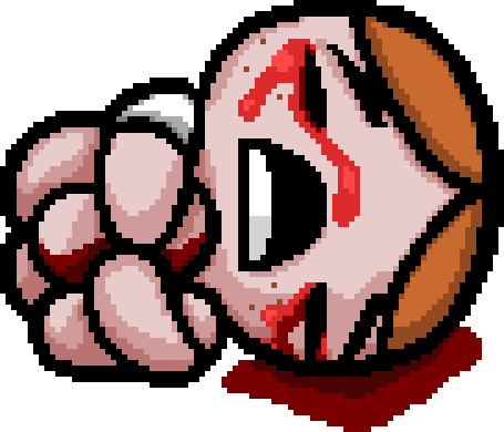 Bloody Lust: El daño aumenta a medida que Isaac recibe daño. El aumento de daño se mantiene durante todo el piso, pero se restablece al entrar en un piso nuevo. El daño aumenta en cantidades fijas: +0,5 por el primer golpe y +0,2 adicional por cada golpe, hasta +1,5 en el sexto. El total máximo es +6,0. Cualquier daño recibido después del sexto golpe no aumenta aún más el daño. Isaac se vuelve más rojo a medida que aumenta su daño.
