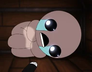 Potencia de Ataque: Al menos Nivel Ciudad+ (Es capaz de derrotar a Mamá incluso sin ítems, quien es tan grande que puede generar esta cantidad de energía cinética), posiblemente Nivel Estrella Grande (Superior a enemigos normales los cuales son capaces de sobrevivir a un agujero negro con daños menores y es capaz de dañar a estos, el agujero negro siendo de este nivel), mayor con ítems (Es capaz de one-shottear seres que son muy superiores físicamente a Isaac sin ítems)