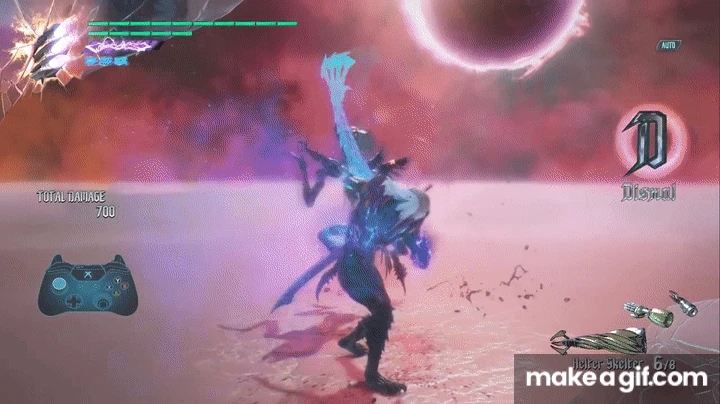 Potencia de Ataque: Nivel Ciudad (Para este punto ya es superior a Echidna, la cual puede cubrir el cielo con una tormenta) 9.63982388237265 Megatones de TNT Nivel Estrella Grande (Tras despertar su Devil Trigger debería de ser comparable a Dante de DMC 3 en ese mismo estado, el cual es capaz de generar la energía de una pequeña supernova. Derrotó a The Savior, el cual pudo recrear la isla de Fortuna junto al sol y la luna como también su ciclo de día-noche) 271.744407266 Quettatones de TNT | Al menos Nivel Multi-Universal (Comparable si no es que superior a Dante de DMC 1 y 2, el cual derroto a Mundus, el cual también es comparable a Argosax, este mismo, con solo su presencia estaba fusionando el mundo humano con el mundo demoniaco, los cuales son universos separados por espacios-tiempos. Argosax también estaba causando distintas paradojas y parando el tiempo en ciertas áreas del mundo humano)