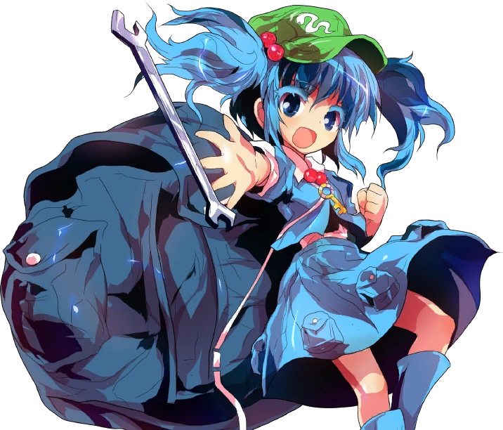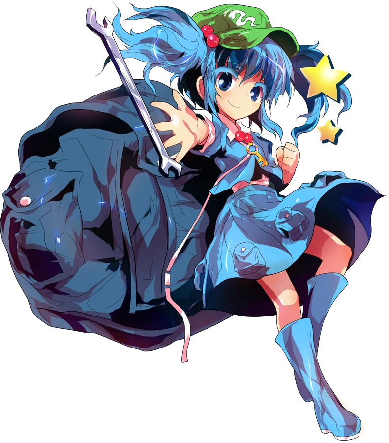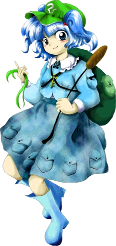 Nitori Kawashiro es un Kappa algo tímida que vive en el Barranco Genbu en la Montaña Youkai. Tiene el poder de controlar el agua y, junto con los otros kappa, es muy buena con la ingeniería y la tecnología.