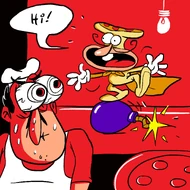 - Manipulación del Fuego: Permanece relativamente bien tras tener toda su boca quemada.[14] Resiste caer en una salsa hirviendo.[15]
