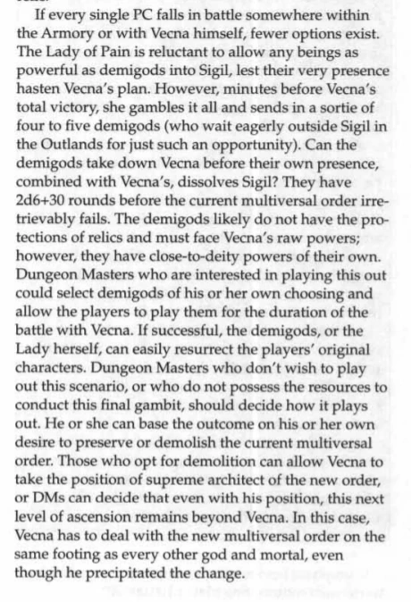 Nota 3: Vecna debería tener una clave para de cuando era un mortal, la razón por la que no la tiene se debe a que su historia de fondo está envuelta en misterio y contradicciones. Esto se debe a que quien dirige la campaña tiene la libertad de poder escribir su historia para la campaña.
